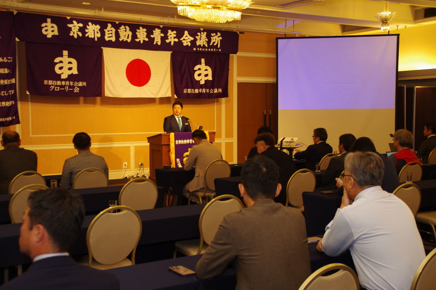 京都自動車青年会議所(AJA、内山隆介会長)は10月16日、都ホテル京都八条(南区)で臨時総会を開催し、次年度会長に森田明氏(㈱ホンダネットキンキ)を選出した。理事会で森田氏を候補者として指名し、臨時総会に上程。審議の上、全員賛成で決議した。